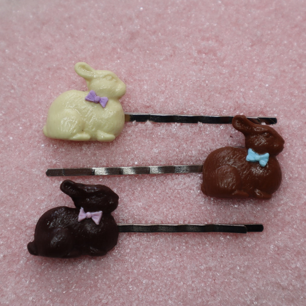 Haal de Lente Vibes in je haren! Leuk voor de aankomende paasdagen. Deze set van 3 schuifspeldjes zijn een echte eye catcher! 🐰 De chocolade paashaasjes zijn handgemaakt van fimoklei met veel geduld en liefde 🩷🫶🏻